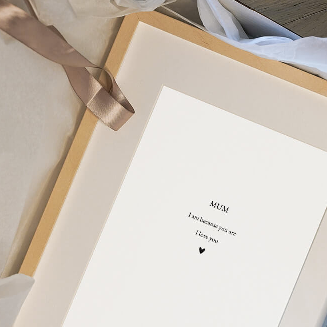 Suggestion for Mother’s Day Gift: You could choose any option for this piece. A digital download – just make sure you have a good printer and select a nice paper or buy an unframed print on our high-quality paper in either sea mist (soft white) or early dawn (soft blush). It also works beautifully in both our A4 standing frame and 30 x 40 frame which is a hanging frame – both come in big white boxes wrapped in a satin bow.